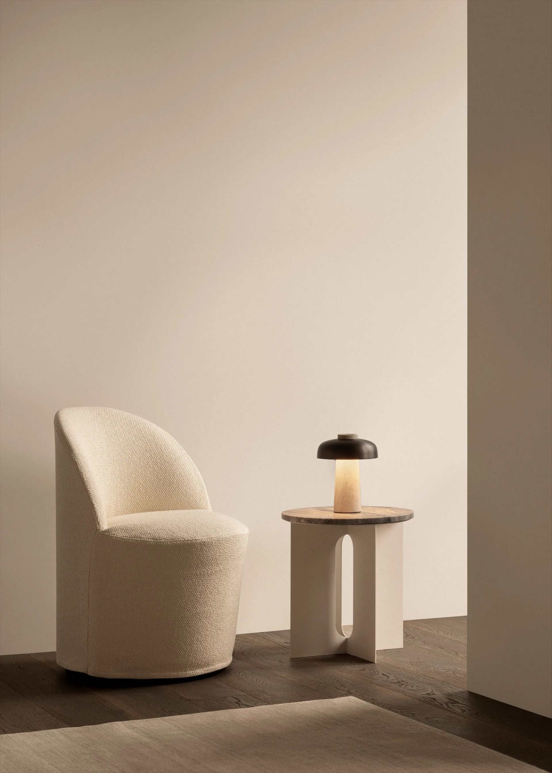 Bordplate av robust marmor for det stilige og minimalistiske sidebordet Androgyne fra det danske designhuset Audo Copenhagen. Bordets design ble laget med fokus på en vakken og spennende silhuett som kombinerer maskulin og feminin styrke, derav navnet Androgyne. Designet er både funksjonelt og fleksibelt, noe som gjør det egnet til bruk som nattbord, salongbord eller sidebord. Leveres i de fleste farger, bordplate og ben selges separat.