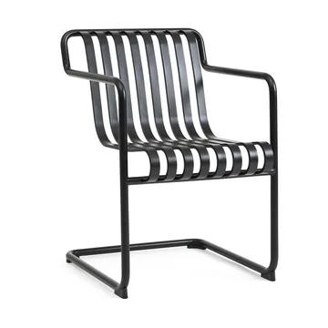 Palissade Cantilever Dining karmstol er en elegant og lettplassert utendørsstol fra HAY som kombinerer moderne design med høy komfort. Den flytende rammen skaper et luftig uttrykk og en lett fjærende sittefølelse, perfekt for lange middager eller avslappende stunder i hagen. Produsert i værbestandig pulverlakkert stål eller varmforsinket stål, er stolen motstandsdyktig mot sol, regn og vind uten vedlikehold. Den minimalistiske formen og de holdbare materialene gjør at Palissade Cantilever Dining karmstol enkelt kan kombineres med øvrige møbler i Palissade-serien og skape et stilrent, funksjonelt og innbydende utemiljø.