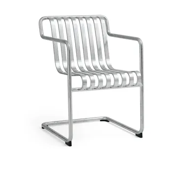 Palissade Cantilever Dining karmstol er en elegant og lettplassert utendørsstol fra HAY som kombinerer moderne design med høy komfort. Den flytende rammen skaper et luftig uttrykk og en lett fjærende sittefølelse, perfekt for lange middager eller avslappende stunder i hagen. Produsert i værbestandig pulverlakkert stål eller varmforsinket stål, er stolen motstandsdyktig mot sol, regn og vind uten vedlikehold. Den minimalistiske formen og de holdbare materialene gjør at Palissade Cantilever Dining karmstol enkelt kan kombineres med øvrige møbler i Palissade-serien og skape et stilrent, funksjonelt og innbydende utemiljø.