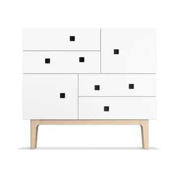 Peep B1 kommode fra Zweed, designet av Håkan Johansson, er et romslig og funksjonelt møbel. Kommoden er litt dypere og høyere enn sine søsken, noe som gir rikelig med plass i skuffer og skap. Den har asymmetrisk plasserte håndtak, som gir et visuelt innblikk i innholdet. Med dempende luker og skuffer, samt flere farge- og benstativvalg, tilbyr den både stil og praktiskhet til hjemmet ditt. Peep B1 finnes i flere modeller og farger.