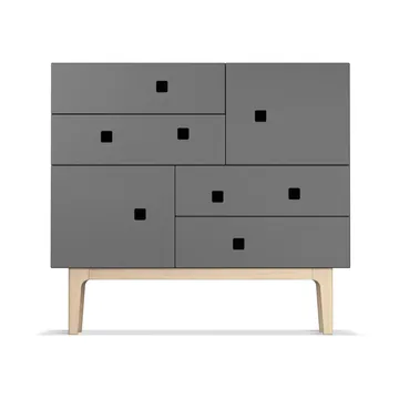 Peep B1 kommode fra Zweed, designet av Håkan Johansson, er et romslig og funksjonelt møbel. Kommoden er litt dypere og høyere enn sine søsken, noe som gir rikelig med plass i skuffer og skap. Den har asymmetrisk plasserte håndtak, som gir et visuelt innblikk i innholdet. Med dempende luker og skuffer, samt flere farge- og benstativvalg, tilbyr den både stil og praktiskhet til hjemmet ditt. Peep B1 finnes i flere modeller og farger.