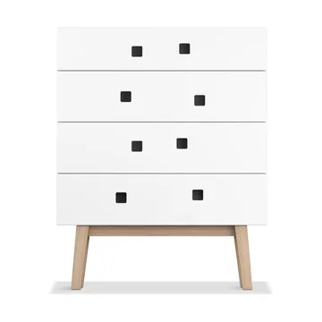 Peep B3 kommode fra Zweed er designet av Håkan Johansson og har fire skuffer som tilbyr rikelig med oppbevaringsplass. De asymmetriske håndtakene gir en unik visuell effekt samtidig som de demper skuffenes lukking for en stille og smidig opplevelse. Denne kommoden finnes i ulike modeller og farger for å passe forskjellige interiører.