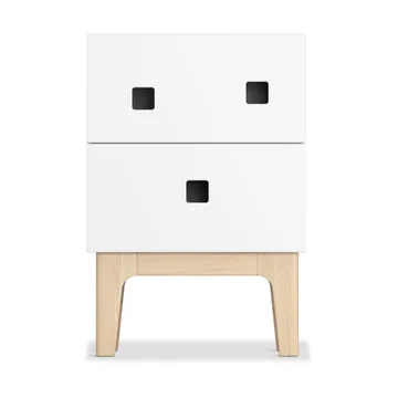Peep S1 nattbord fra Zweed er designet av Håkan Johansson og utstråler lekende eleganse med sine asymmetriske håndtak. Skuffene lukkes mykt takket være innebygde dempere, noe som tilfører en luksuriøs følelse i bruk. Denne delen av Peep-serien tilbyr allsidighet med flere modeller, farger og benstativ, som lar deg finne din unike stil. Oppdag den perfekte balansen mellom estetikk og funksjon i dette gjennomtenkte nattbordet.